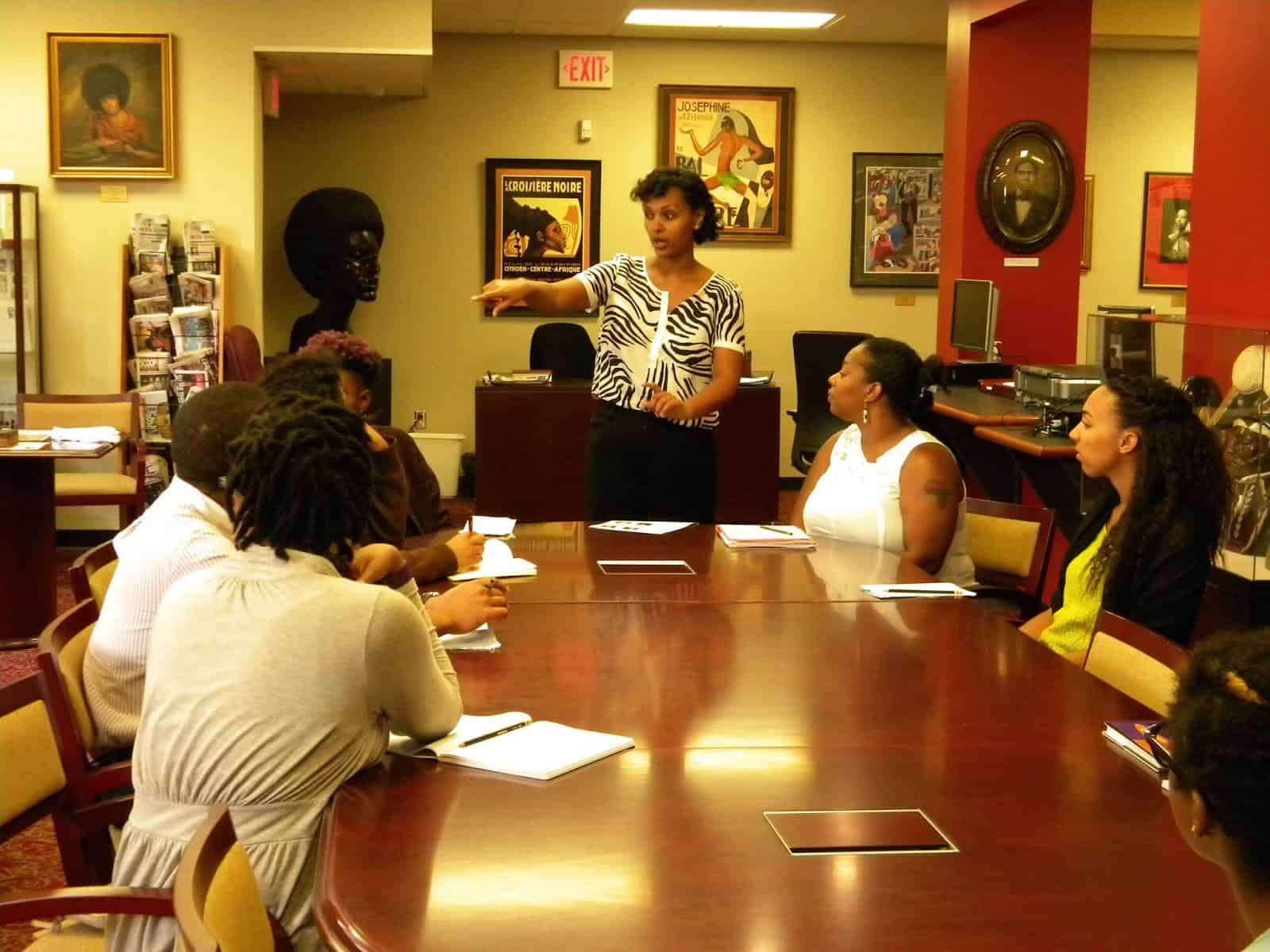 A sizable amount of the students’ time was spent outside the walls of LCP as well. We took the group on a number of trips throughout Philadelphia to acquaint participants with some of the other institutional resources the city has to offer. For instance, we visited Temple University’s Charles L. Blockson Afro-American Collection and the Historical Society of Pennsylvania. The Mellon Scholars also spent time at the historic Mother Bethel AME Church where they learned about the institution’s background and its role as a pillar of Philadelphia’s black community. Together the trips helped to enrich students’ understandings of African American history.
