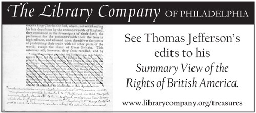 ![Thomas Jefferson, A Summary View of the Rights of British America. (Williamsburg VA : Printed by Clementina Rind, [1774]).](http://www.librarycompany.org/treasures/essays/ad11/am1774jeff-1982-o-12-p8-9_sm.png)