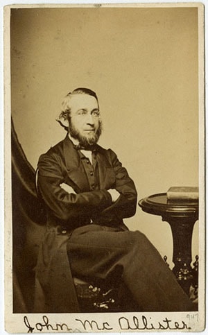 The minutes of the Library Company Board of Directors meeting of April 4, 1886, relate that “a communication was received from Mr. John A. McAllister offering to give the company a collection of illustrations and printed matter relating to the civil war, which he said cost him the labor of twenty years and more than a thousand dollars of money.” The collection McAllister subsequently bestowed on the Library Company totaled some 50,000 items–mostly printed Philadelphia ephemera, prints, and photographs–and constituted a detailed and nuanced record of social, cultural, and political life on the Philadelphia home front during the Civil War.