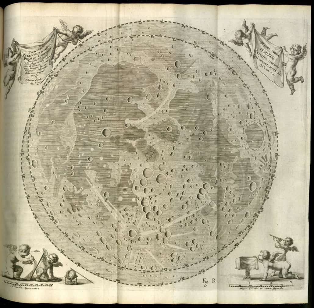 Plate in Johannes Hevelius, Johannis Hevelii Selenographia : Sive, Lunae Descriptio … (Gedani: Autoris sumtibus, typis Hünefeldianis, 1647), opp. p. 40.