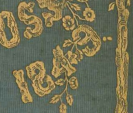 For 1851, they extracted the large vase of flowers from the die used on the 1848 and 1849 covers and used it as a centerpiece. A new border around the edges was used, composed of a floral design which more closely resembles the spine decoration. The same spine stamp was used, and yet again, it was altered to reflect the year. For the lucky youth who owned all the E.H. Butler Christmas Blossoms, they must have looked very elegant on the bookshelf, with their uniform and profusely gold-stamped spines.