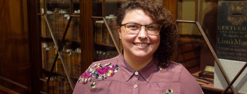 Abigail Guidry joined the Library Company in August 2023. She is the Scanning and Metadata Technician for the grant-funded Library Company of Philadelphia Papers Project, which focuses on the processing and digitization of the Library Company’s first 150 years of history. She completed her MLIS from the University of Wisconsin – Madison with a concentration in Archives in 2022 and holds a BA in Creative Writing from the University of Louisiana at Lafayette.